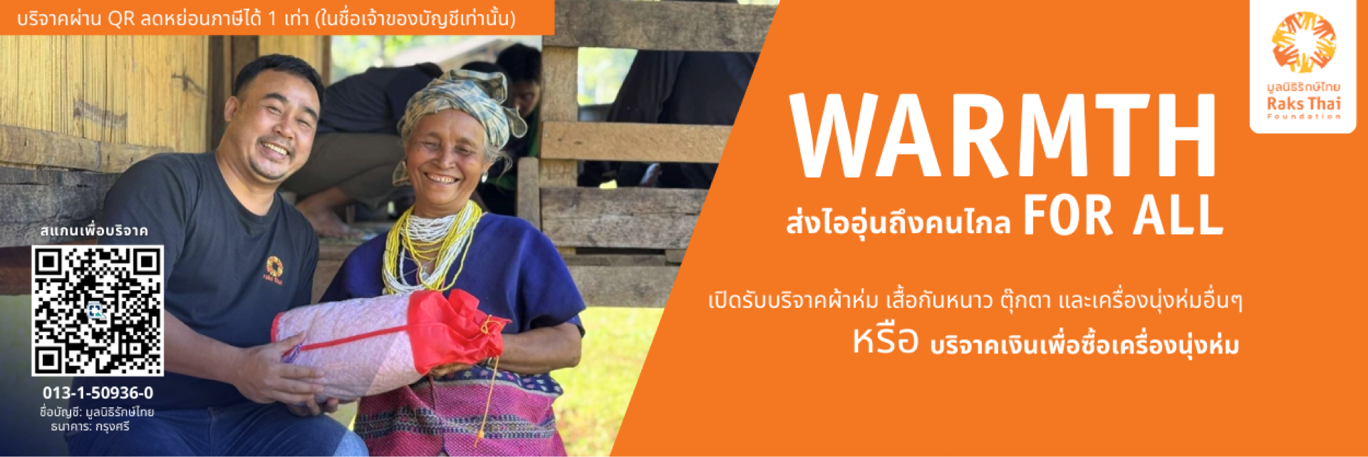 ทุกผ้าห่มที่คุณมอบ ทุกบาทที่คุณบริจาค คือการช่วยเด็ก ๆ ให้ปลอดภัยจากหนาวแรก ช่วยผู้สูงอายุให้มีคืนที่อบอุ่น และช่วยเสริมพลังให้ชุมชนยืนได้ด้วยกำลังของตัวเอง